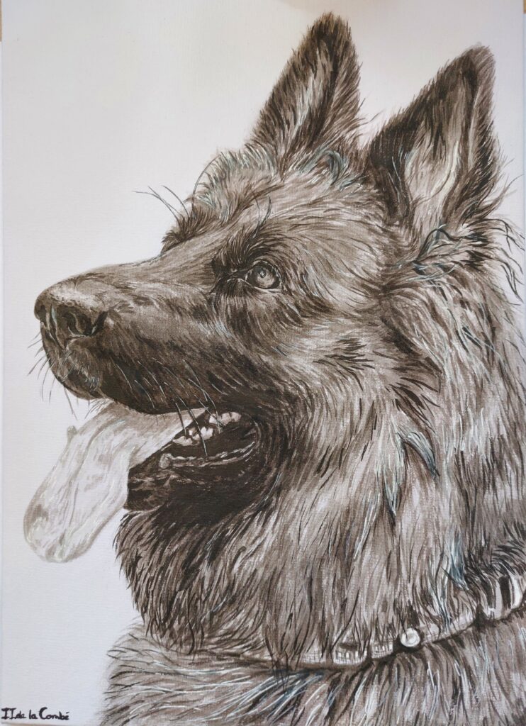 Ik, Iris de la Combé, werk elk detail uit, waardoor de persoonlijkheid van jouw dier echt tot leven komt. Dit kunstwerk is perfect als blijvende herinnering of persoonlijk cadeau.