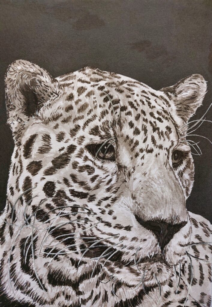 Er wordt geschilderd op een canvas schilderkarton en er wordt gebruik gemaakt van Oost-Indische inkt